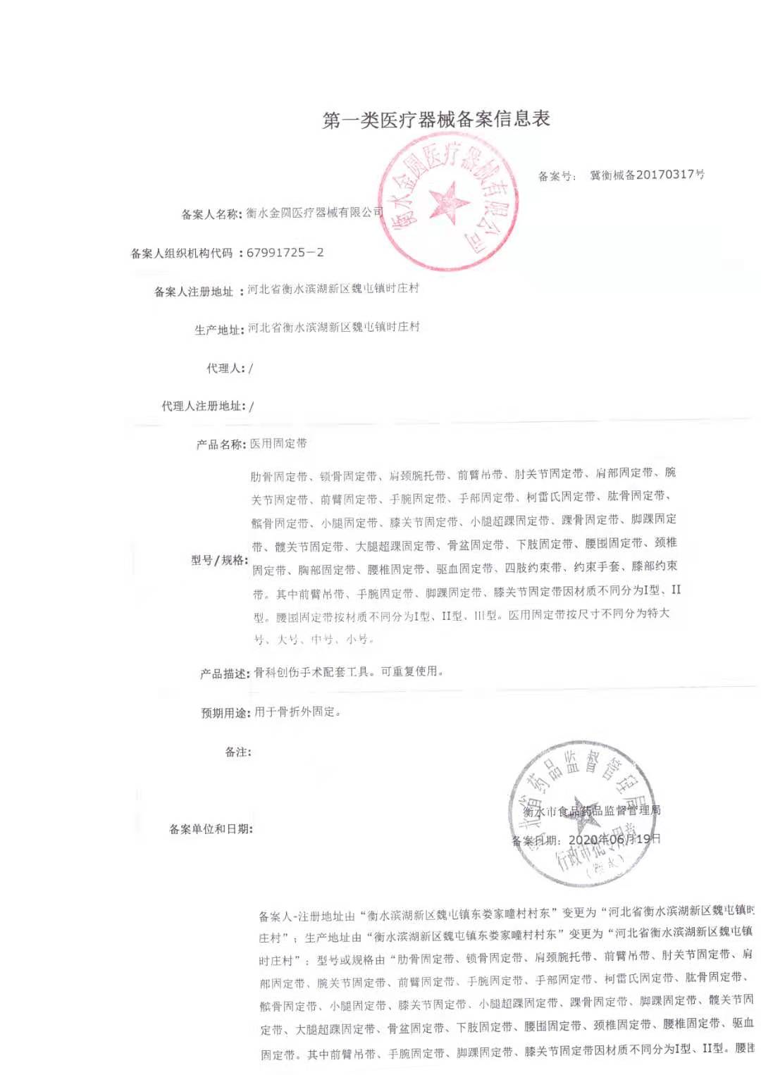 衡水金圓醫(yī)療器械有限公司,座落于風(fēng)景秀麗的自然保護(hù)區(qū)衡水湖畔,北鄰京九鐵路、石徳鐵路,西臨106國(guó)道,地理位置優(yōu)越,交利。公司研發(fā)各類(lèi)護(hù)理器具、醫(yī)療保健用品,目前在衡水市醫(yī)療器械品種齊全,規(guī)模較大的廠(chǎng)家。 主要產(chǎn)品有:自發(fā)熱運(yùn)動(dòng)護(hù)具、醫(yī)用固定帶、腹帶、各種醫(yī)用拐、多功能護(hù)理床、產(chǎn)床、高分子支具、骨折固定夾板、夾板、彈力網(wǎng)狀繃帶帽等。